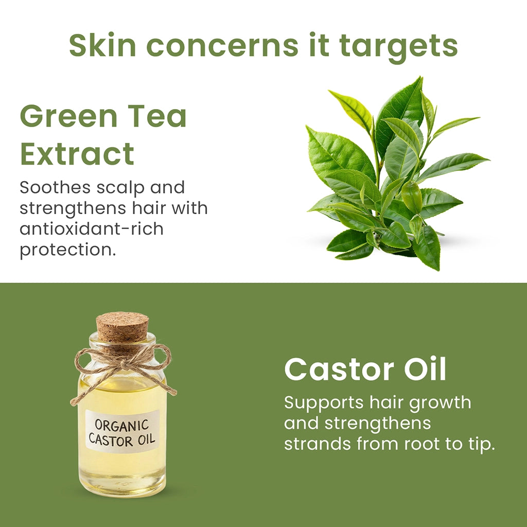 Our Green Tea Hair Conditioner is more than simply a hair conditioner; it's a tranquil haven for your scalp and tresses. The creamy texture glides through your hair gently, detangling without weighing it down. It's free of harsh chemicals like parabens. Our hydrating conditioner is suitable for all hair types, including colored and treated hair.